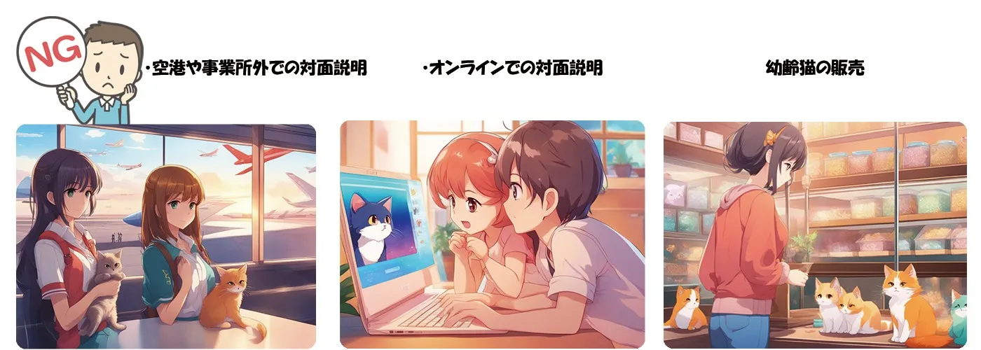 対面説明では、動物販売業者が購入希望者に対して、以下の事項について説明する必要があります。