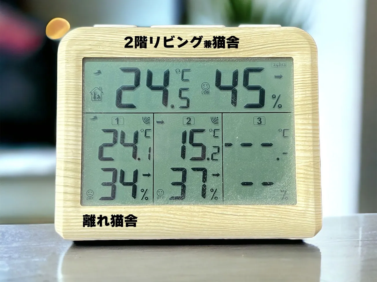 2階リビングにもお迎えまでの子猫がいます。24℃45%とちょうどいい環境ですね。